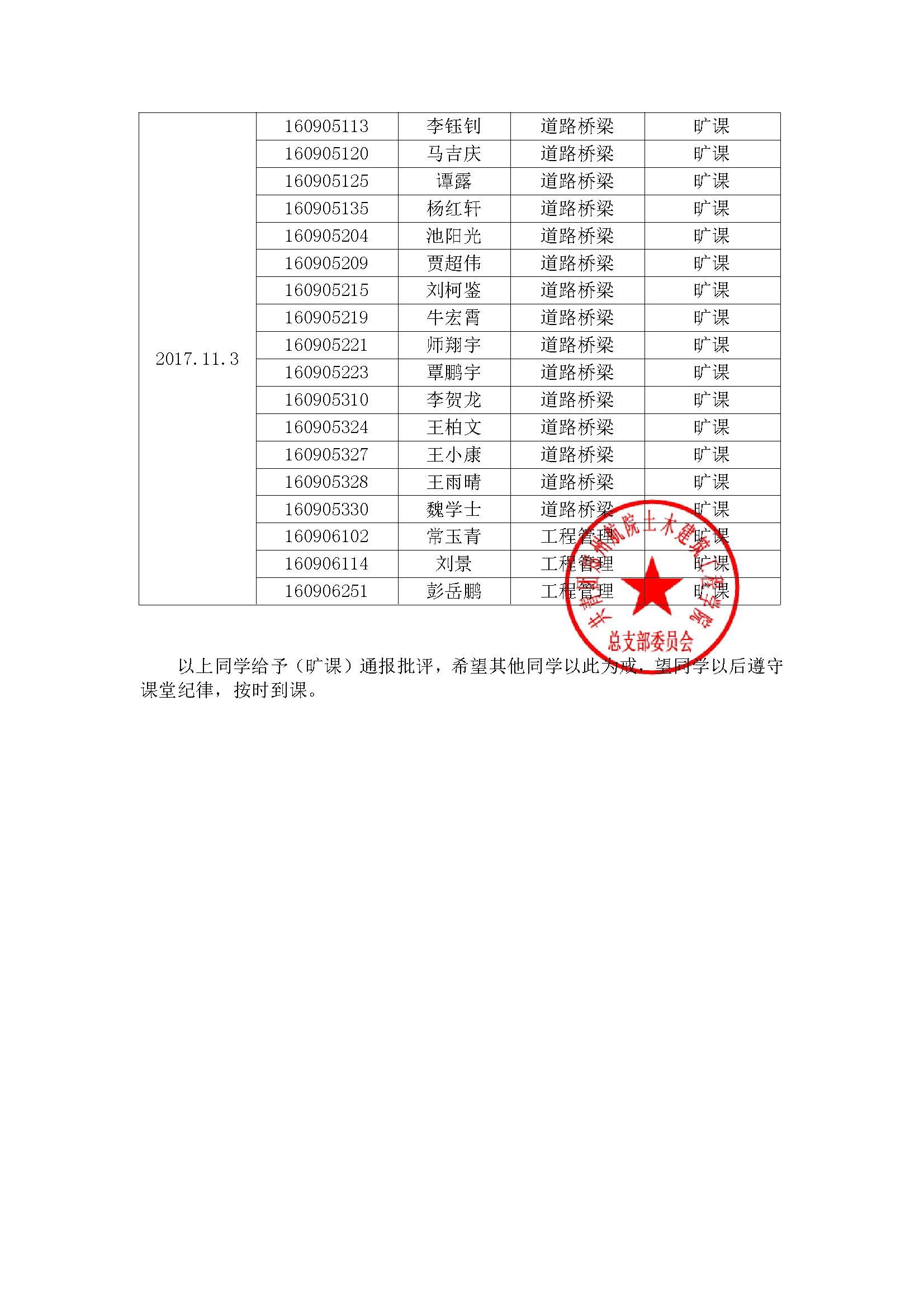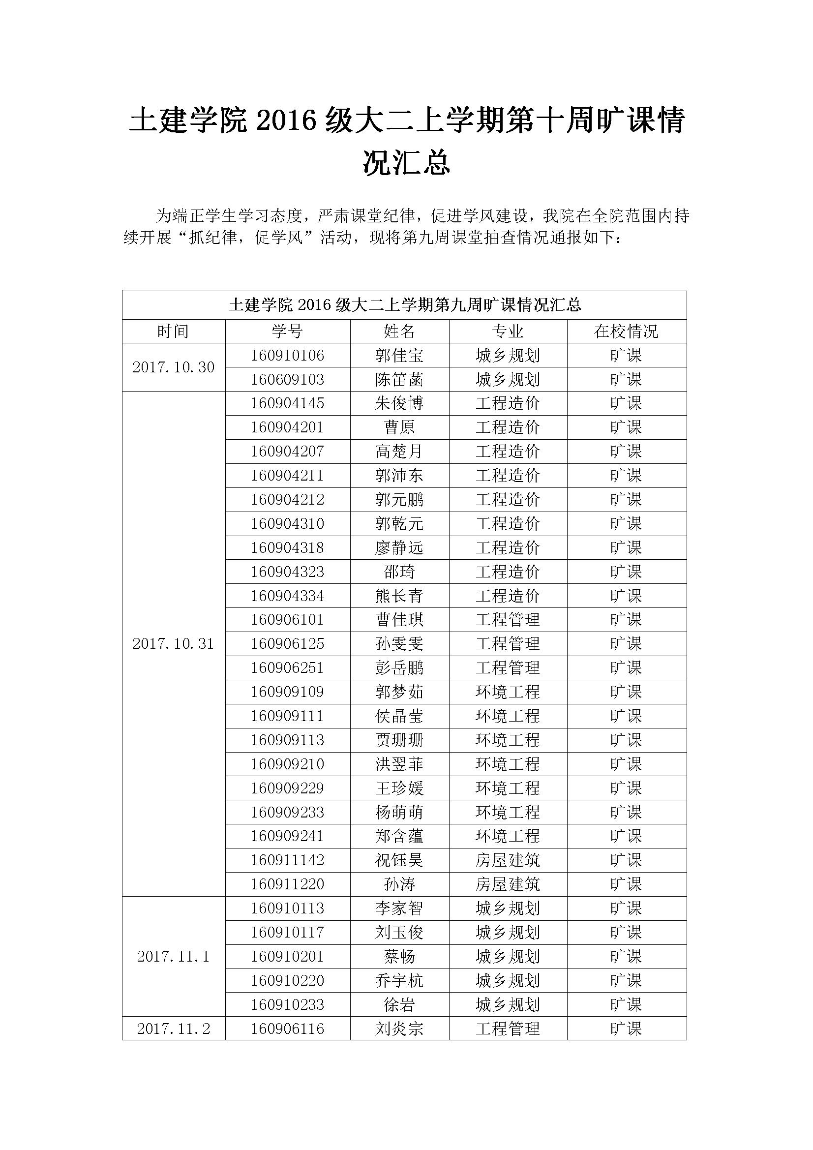 上一条:土建学院2016级大二上学期第十周迟到情况汇总 下一条:土建学院2017级大一上学期第十周旷课情况汇总