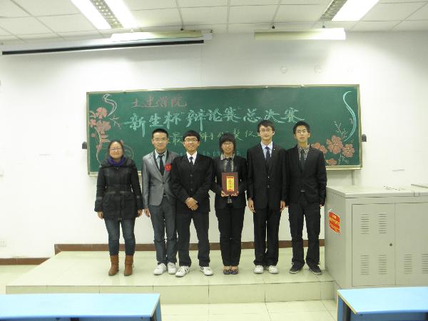 最终,1109043班凭借敏锐的思辨能力获得此次辩论赛的冠军,1109092班、1109072班分获二、三名。徐老师和张老师分别对获奖队伍和最佳辩手颁发了奖项并合影留念。(110906217李玉凤)