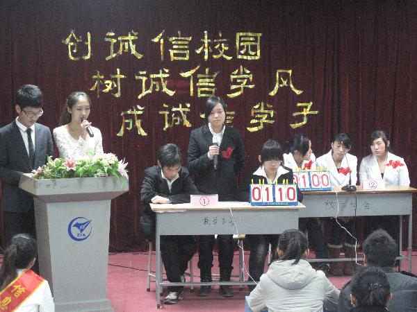 据悉,此次“诚信校园行”知识竞赛由校团委、学生处共同主办,信息科学学院承办。总决赛将于12月5日晚在01A203教室隆重拉开帷幕。(110906130王引110906217李玉凤)