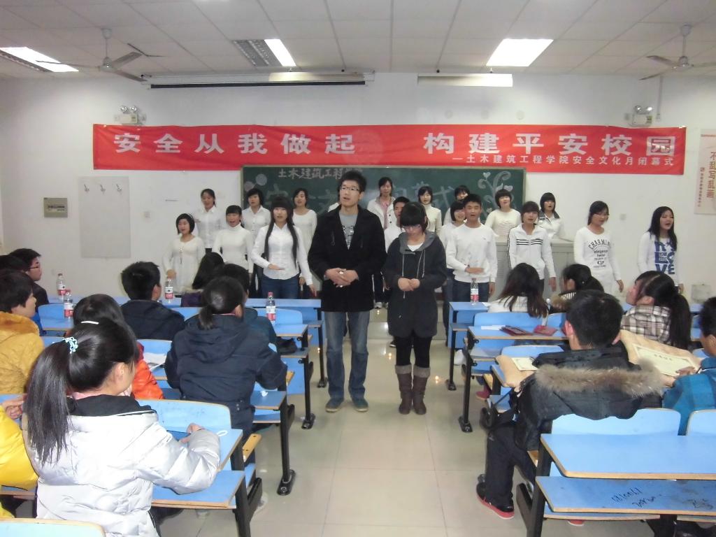 12月6日晚7:30,土木建筑工程学院安全文化月在我校东校区01B304教室圆满落幕。参加闭幕式的嘉宾有学院团总支学生会要员、12级辅导员助理,及各兄弟院系纪检部代表。学院共有140余名学生代表参加闭幕式。