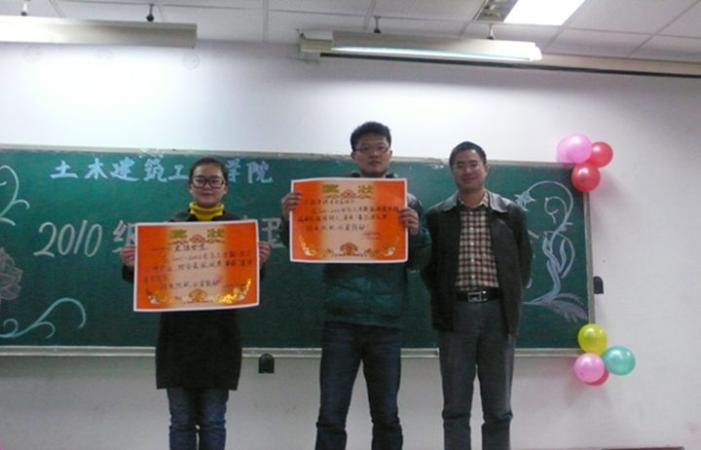 校团委副书记吴红兵首先祝贺了获奖的宿舍和同学,肯定了以宿舍为突破口的学风建设办法。随后,吴书记以学长的身份分享了大学生活的感悟:珍惜宝贵大学生涯;珍惜身边所有同学的情谊;珍惜学习英语的机会;在大学期间注重发展特长;远离网络游戏,明确目标并努力向前奋斗;注重同学间的交流,在交往过程中学会与人相处。土木建筑工程学院副院长杨德钦发表讲话,我们应珍惜大学生活,不怨天不尤人,不抱怨自己改变不了的现实环境,尽自己努力,过好“大多数情况下普遍认可的大学生活”,并在互动中详细解答了同学们学习考研中的问题。会议最后,徐亚辉老师对大会进行了总结,下一步紧抓宿舍文化的建设,正面引导,使得整个2010级和谐团结,奋发进步。