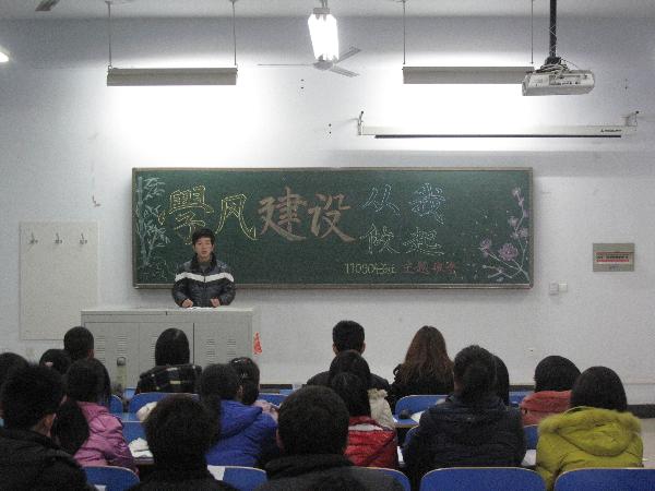 为迎接即将到来的期末考试,加强学生考前“考风考纪”教育。近日,土建学院2011级各班分别开展了以“学风建设”为主题的班会。会议由各班班长主持。班会上,班长及其它班委分别针对考前复习的策略和方法发表了自己的看法,并组织同学们讨论了对即将到来的期末考试的看法,同学们普遍认为,考前的轻微紧张感可以增加他们的学习动力,有助于认真复习。随后,各班班长强调了考风考纪的重要性并对全体同学发出倡议:做好考前复习,认真阅读学校考试规定,严格遵守考试纪律,坚决做到“不抄袭,不挂科”。