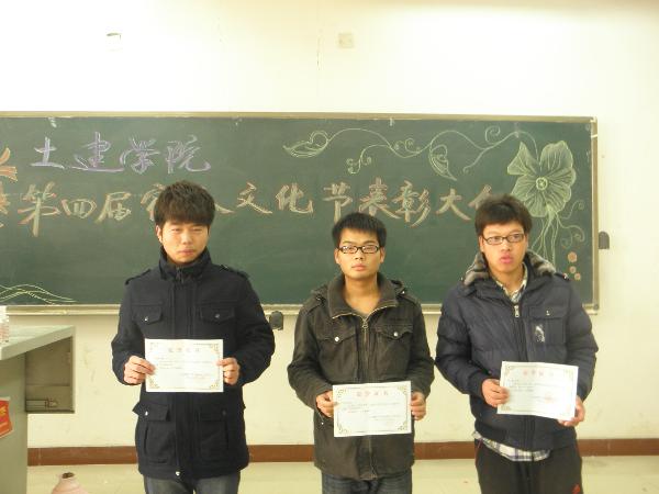 随后张书记和刘方方老师为获奖的宿舍、集体和个人颁发了证书和锦旗。在我校宿舍文化节中,土建学院共有4个宿舍入围最终决赛,并最终取得第3、4、6名的优异成绩。张书记对土建学院在本次活动中取得的优秀成绩给予了充分肯定,他代表土建学院党总支对获奖的宿舍和个人表示祝贺,向广大团学干部的辛苦努力和同学们的积极参与表示了衷心感谢。张书记希望同学们要以先进为榜样,不断增强宿舍成员的凝聚力,逐步形成良好的宿舍新风气,使每一个宿舍都成为温馨的家。最后,张书记预祝同学们在期末中考出优异成绩、新年快乐。