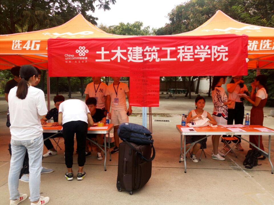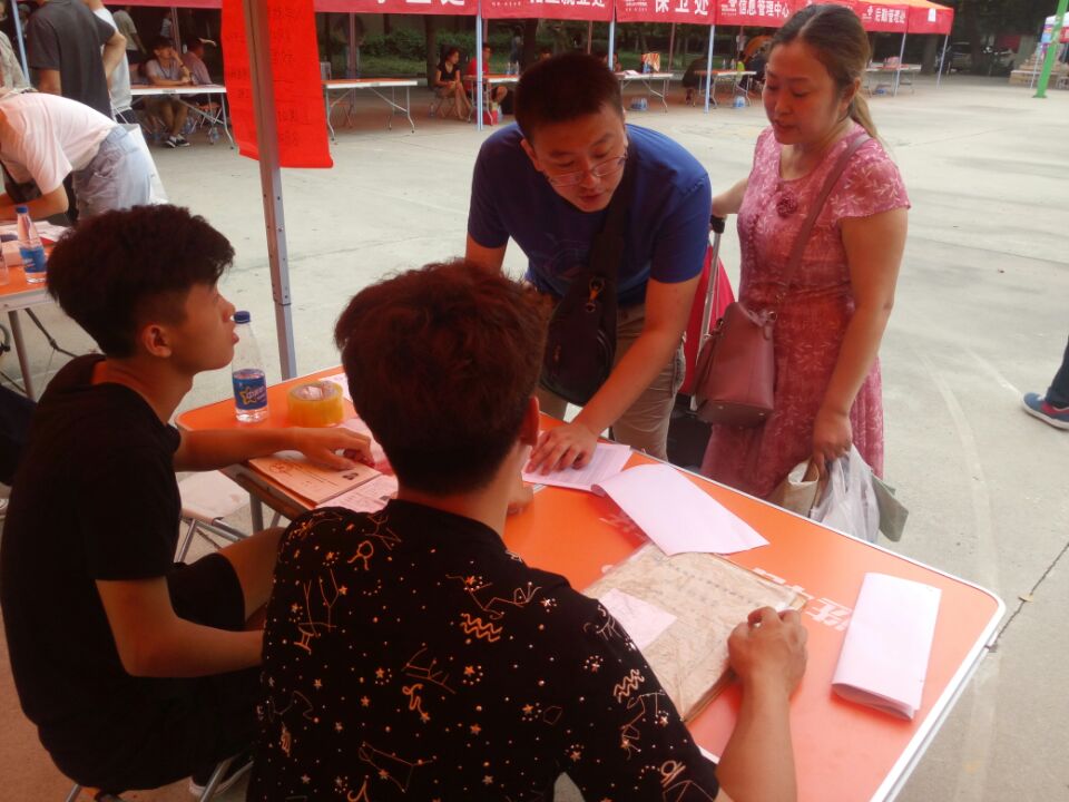 为迎接新生的到来,学校在火车站设有新生接站点,安排志愿者为新生提供服务,并就新生报到流程进行详细介绍;学院教职员工帮助新生办理入学手续,解答学生和家长提出的各种问题,尽管报道期间一直在下雨,报到现场秩序井然;志愿者们也为新生搬运行李、指引道路,帮助新生熟悉校内环境。另外,学院为新生开辟了“绿色通道”,确保经济困难的学生能够顺利入学。