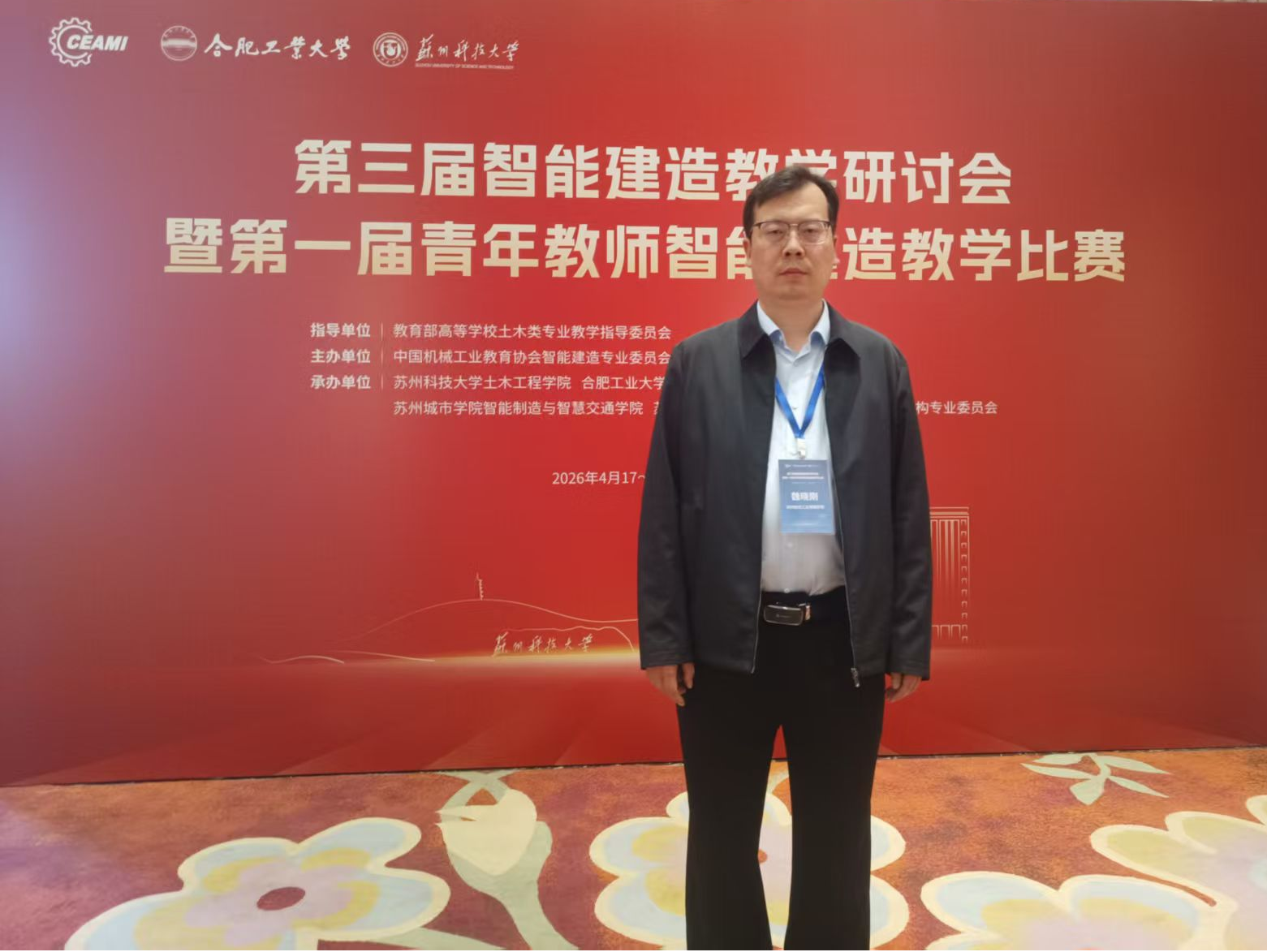 2026年4月17日至19日,由教育部高等学校土木类专业教学指导委员会指导、中国机械工业教育协会智能建造专业委员会主办的“第三届智能建造教学研讨会暨第一届青年教师智能建造教学比赛”在苏州科技大学召开,来自百余所高校、近300位参会代表共聚一堂,交流智能建造专业课程建设、人才培养和实践教学等产学研用关键问题。我院副院长魏晓刚教授应邀参会,与来自全国各地的专家学者、教育工作者齐聚一堂,共同探讨智能建造专业教学的前沿动态与发展趋势。