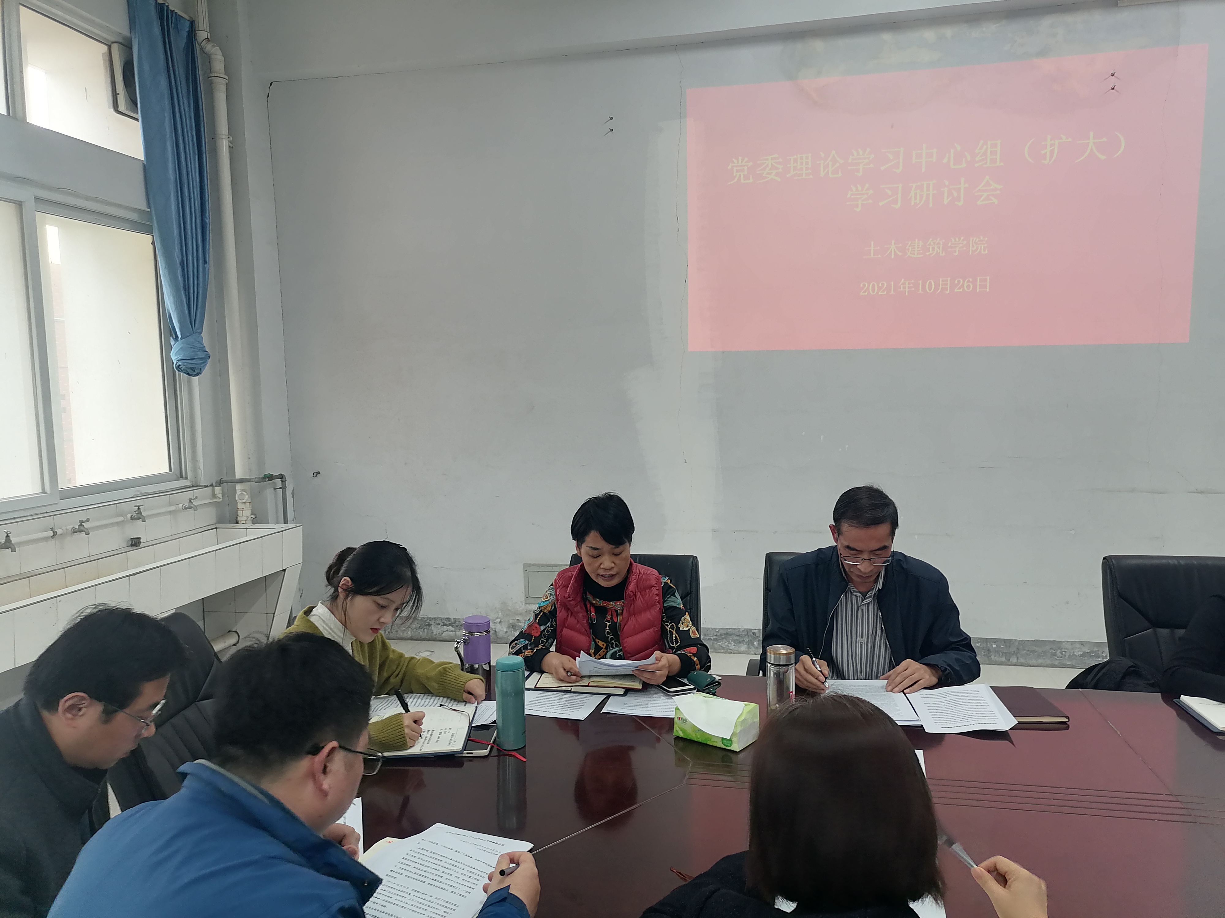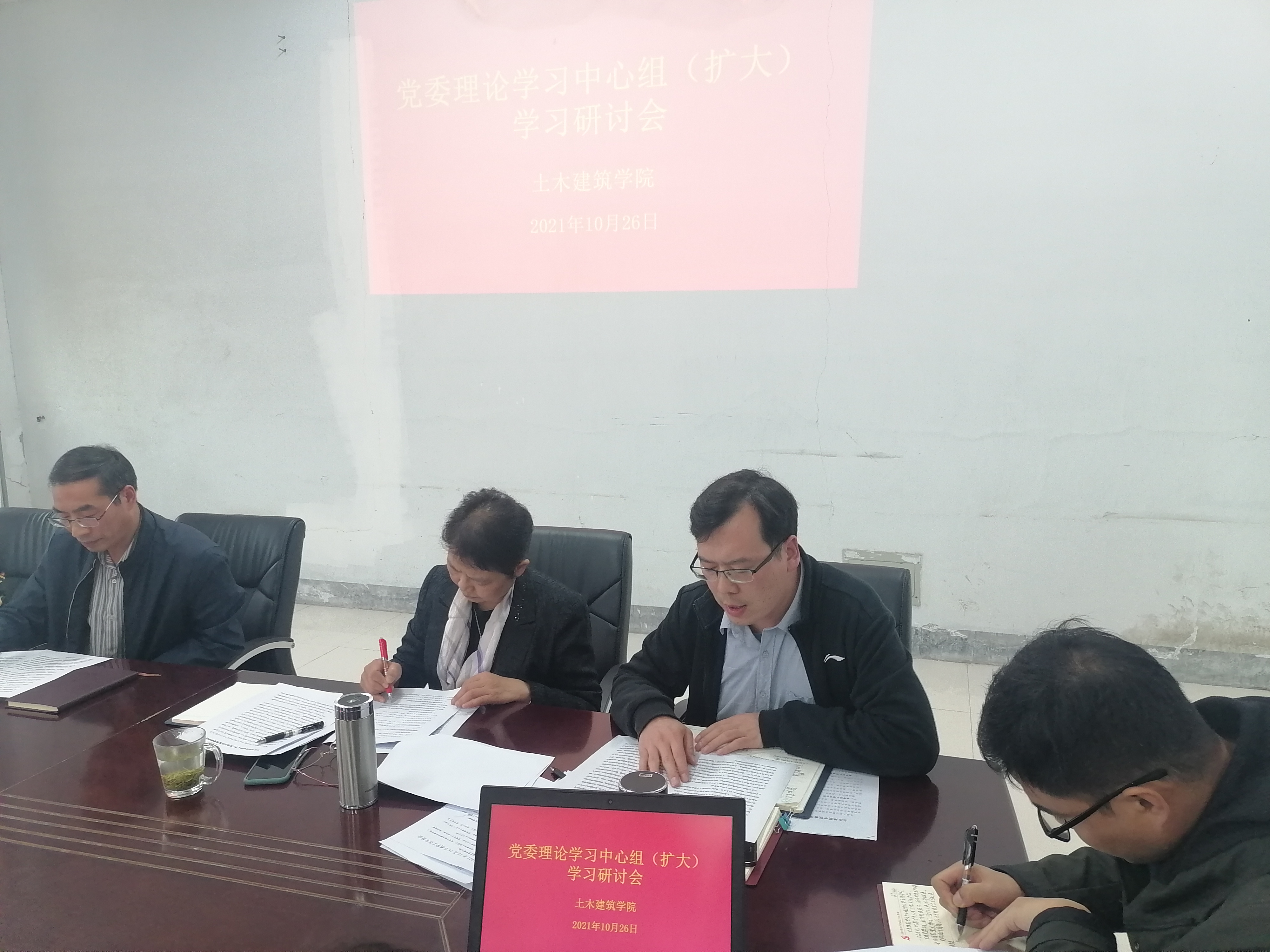 10月26日下午,我院于09A503会议室召开党委理论学习中心组(扩大)专题学习会,深入学习习近平在中央人才工作会议上的重要讲话精神和习近平在纪念辛亥革命110周年大会上的重要讲话精神。土木建筑学院党委委员、各党支部书记参会,会议由土木建筑学院党委书记李春光主持。
