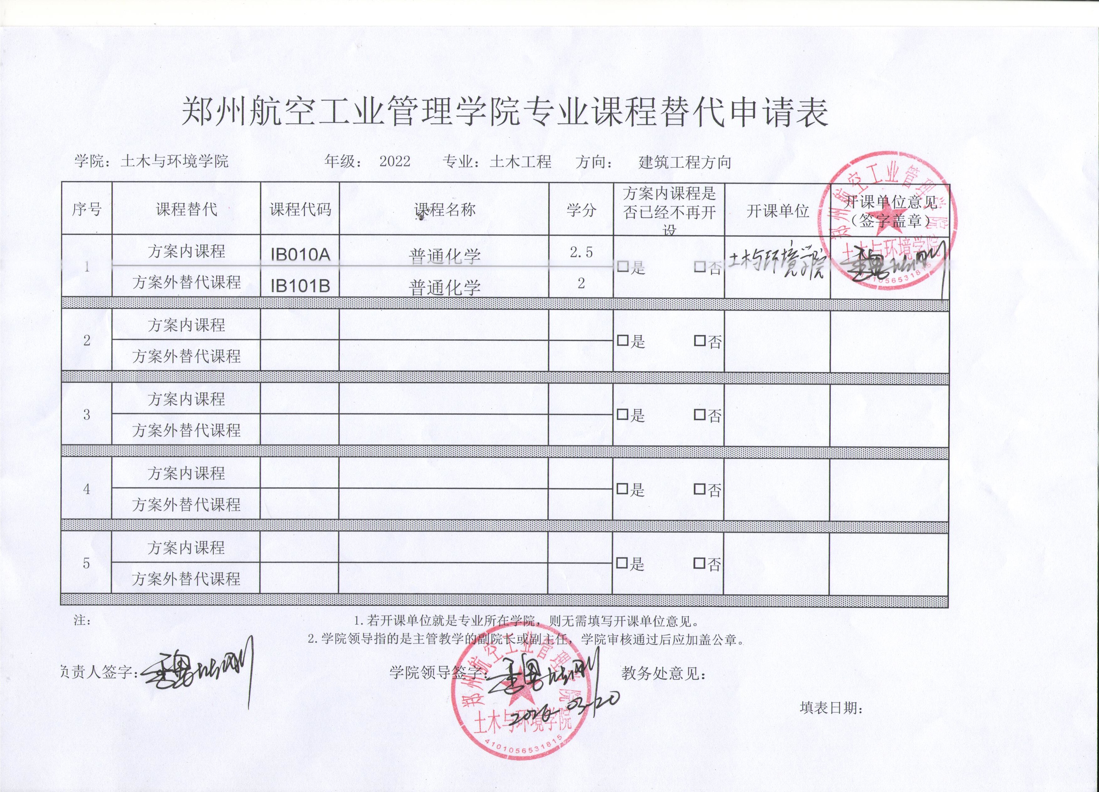 2022级土木工程专业(建筑工程方向)替代