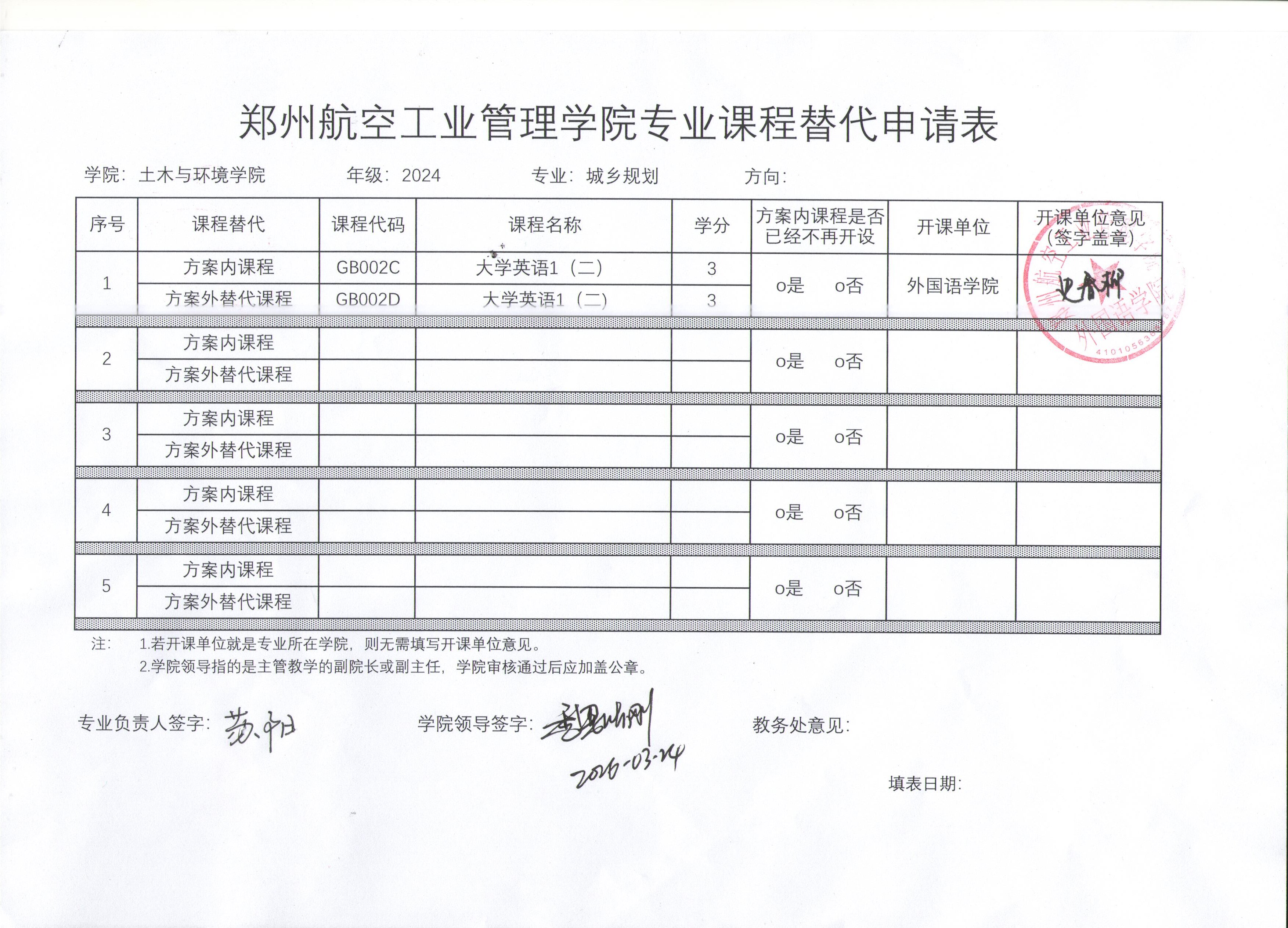 2024级城乡规划专业课程替代