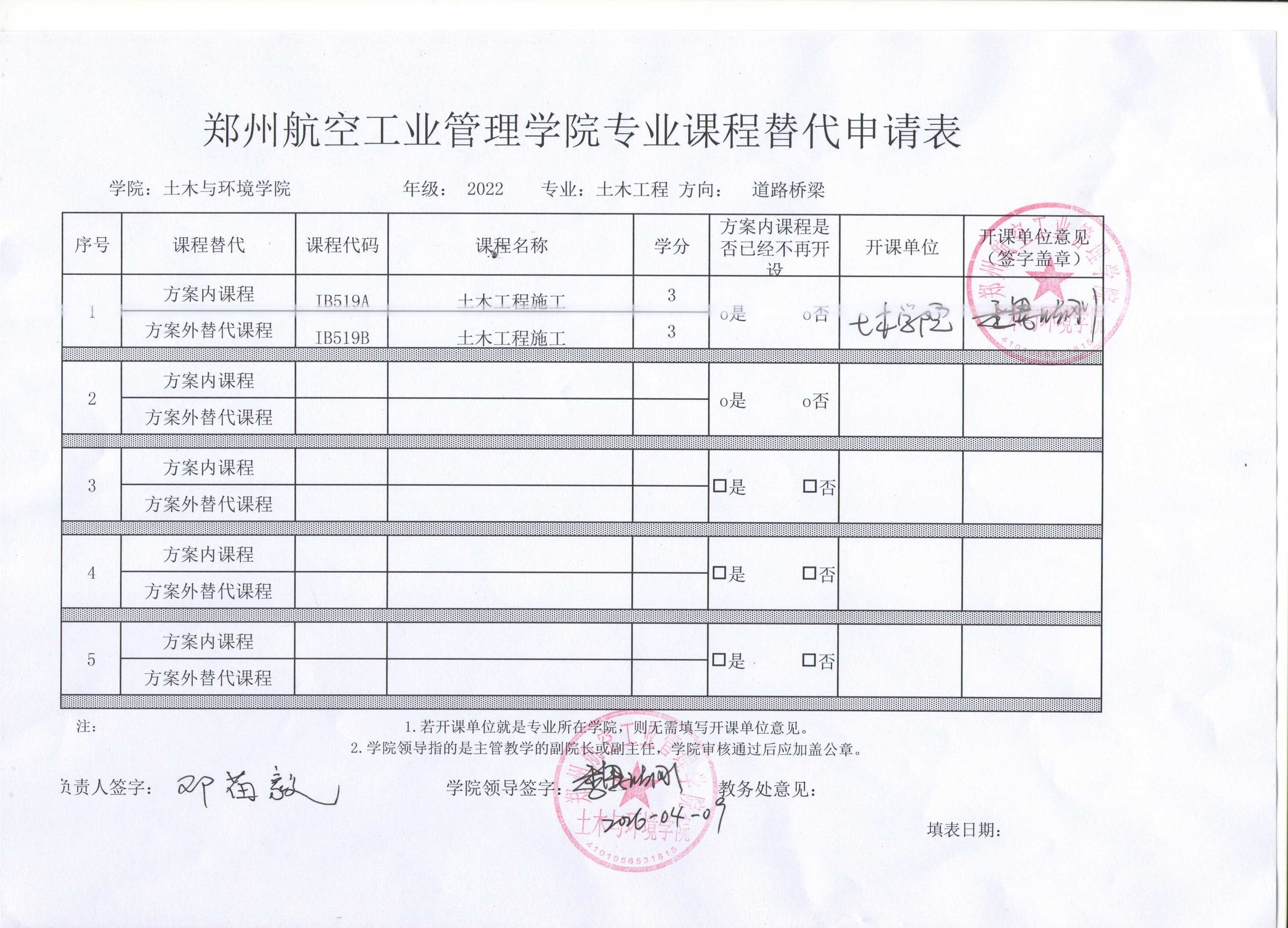 2022级土木工程专业(道路桥梁方向)课程替代公示