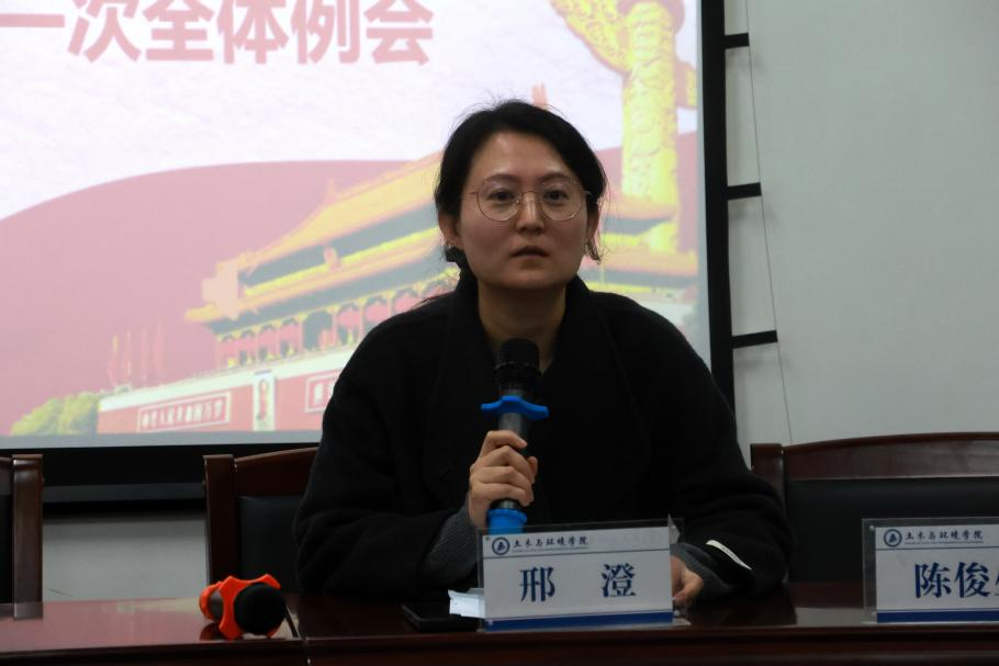 随后,团委书记邢澄在讲话中指出,新成员要不断提升思想觉悟,积极进取,争做引领方向的旗帜。她希望大家尽快适应新角色,主动履职、勇于担当,将个人追求融入学院发展大局,以实际行动助力学院建设,努力成长为符合新时代要求,有理想、敢担当、能吃苦、肯奋斗的青年骨干。