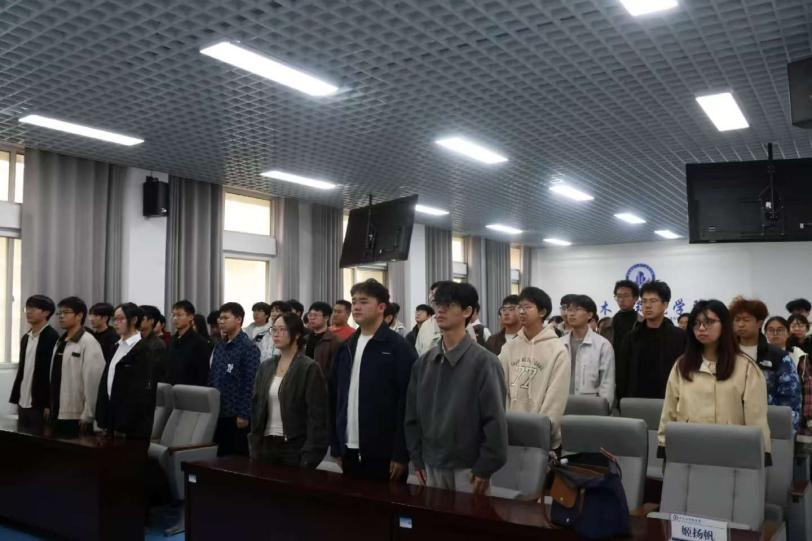 会议在庄严的国歌声中拉开帷幕。李亚宁首先对新成员的加入表示热烈欢迎,并对全体成员提出殷切期望:一是希望大家在岗位实践中不断积累经验、锤炼能力,勇于突破自我,将工作挑战转化为成长的契机,实现专业素养与综合素质的全面提升;二是希望各位成员以饱满的热情投入工作,将个人成长与团队发展紧密结合,为组织目标的实现贡献坚实力量。他强调,作为学生骨干,应主动担当、以身作则,恪守校纪校规,真诚服务同学,共同谱写学院学生工作的新篇章。
