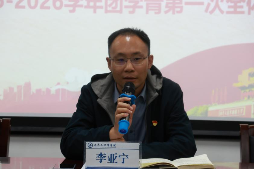 为加强团学青队伍建设,激发学生成长潜能,提升其主观能动性与责任意识,进一步发挥学生骨干在广大学生中的示范引领作用,近日,土木与环境学院在09A405召开2025-2026学年团学青第一次全体例会。土木与环境学院党委副书记李亚宁、团委书记邢澄、22级辅导员王嘉威、23级辅导员陈俊生以及第二十七届团学青全体成员参加。