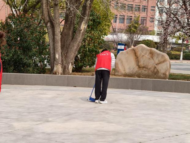 3月14日中午,学院组织青年志愿者队伍,前往冯如广场及月牙湖区域开展校园环境清扫志愿服务。志愿者们身着统一红马甲,手持扫帚、垃圾夹、抹布等清洁工具,合理分组、分工协作,对广场地面、绿化带、校园步道、公共座椅等公共区域进行全方位细致清理。活动中,大家不怕脏、不怕累,以饱满的热情认真打扫每一处角落,主动弯腰捡拾杂物、擦拭公共设施,用实实在在的行动美化校园环境。经过两个多小时的辛勤劳作,校园重点区域面貌焕然一新,整洁有序的环境赢得师生认可,志愿者们也在亲身实践中收获了奉献的快乐与成长的感悟。