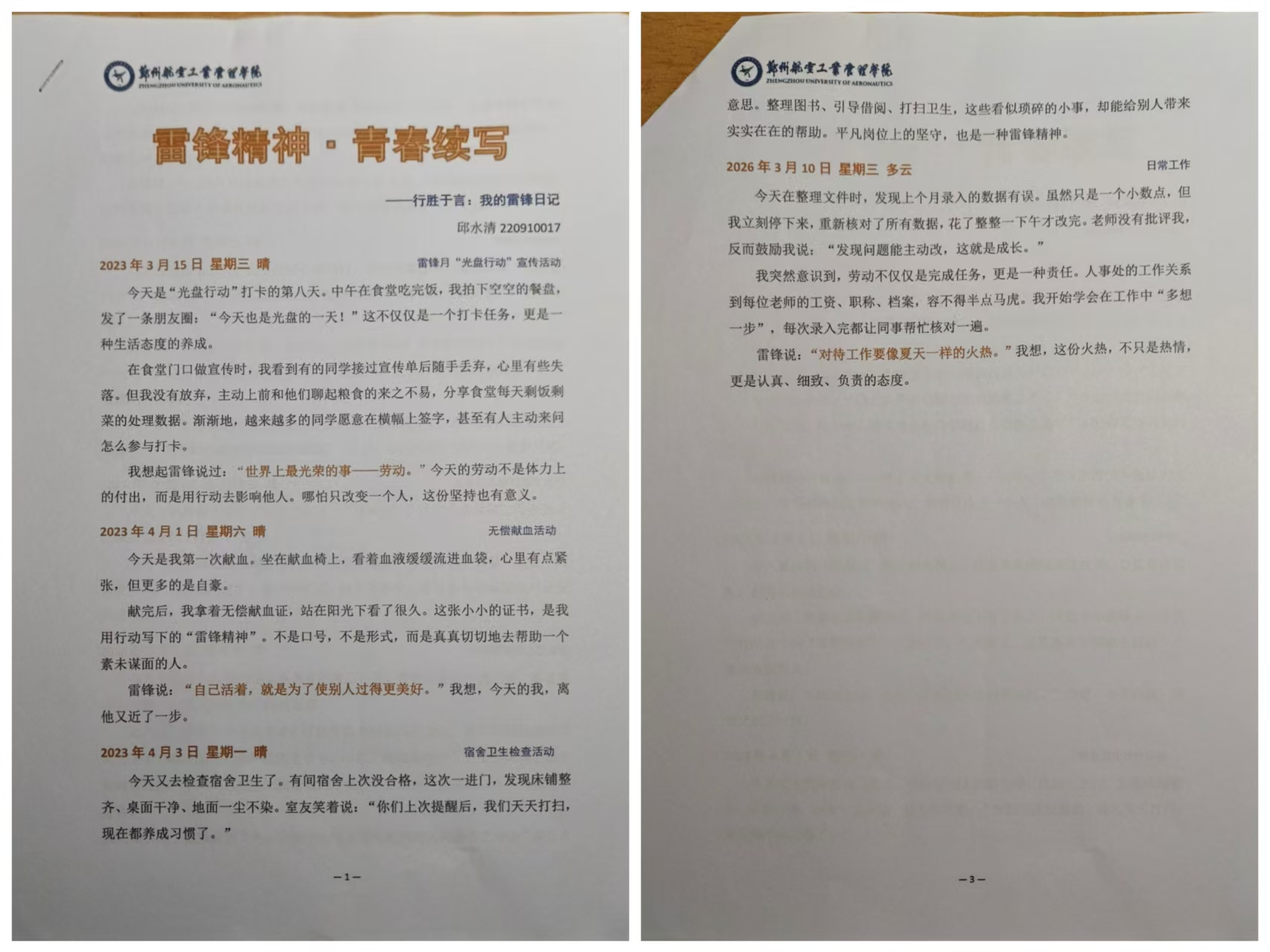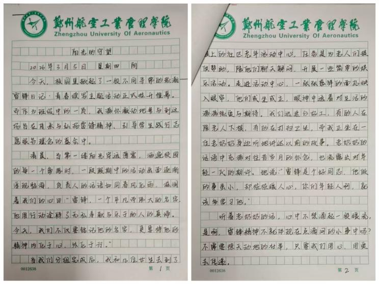 为进一步深化学习成效,推动雷锋精神入脑入心,学院同步启动“雷锋日记”主题征文活动。活动鼓励同学们以日记为载体,记录参与学雷锋活动中的所见所闻、所思所感,或是用文字抒发对雷锋精神的理解、对榜样人物的敬仰之情。