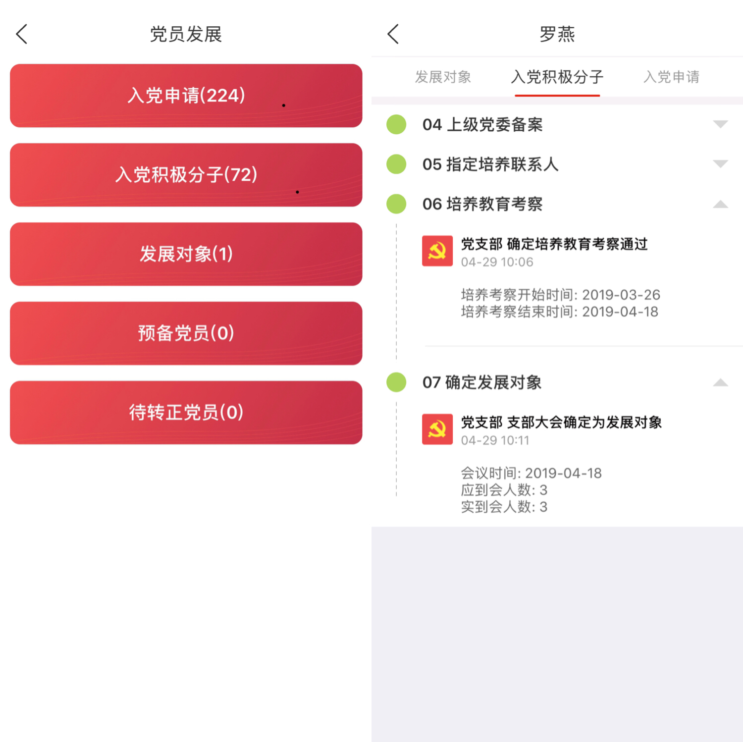 “智慧党建”平台分为申请入党、党员发展、党员学习、党建活动、党员档案、党建要闻及政治生日七个栏目,以服务党员为中心,围绕党员群众关心的问题,创新学习资源、学习方式和学习载体,极大提高了党员的学习丰富性、生动性和多样性。平台将党员的入党流程进展全过程透明化,运用“网络支部”党组织等方式,探索把党的组织建立在网上、工作覆盖到线下,促进基层党组织与人民群众在双向互动、反复沟通的过程中形成共识、凝聚力量。