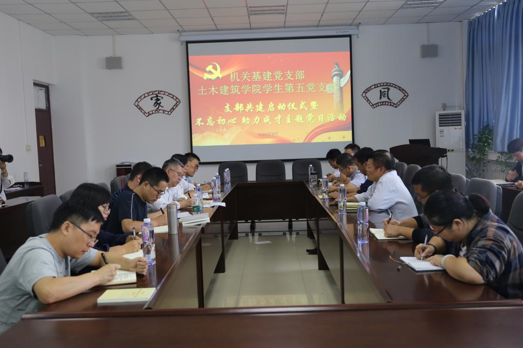 9月18日下午,机关基建党支部与土木建筑学院学生第五党支部共建启动仪式暨“不忘初心,助力成才”主题党日活动在05C416会议室正式启动。机关党委书记秦洪珍和土木建筑学院党委书记许洪春出席本次活动。基建党支部及土木建筑学院学生第五党支部全体党员参加共建活动。共建活动由基建党支部书记白俊涛同志主持。面对鲜红的党旗,所有党员举起右拳,重温入党誓词。启动仪式在“不忘初心,牢记使命”的铿锵誓言中拉开序幕。