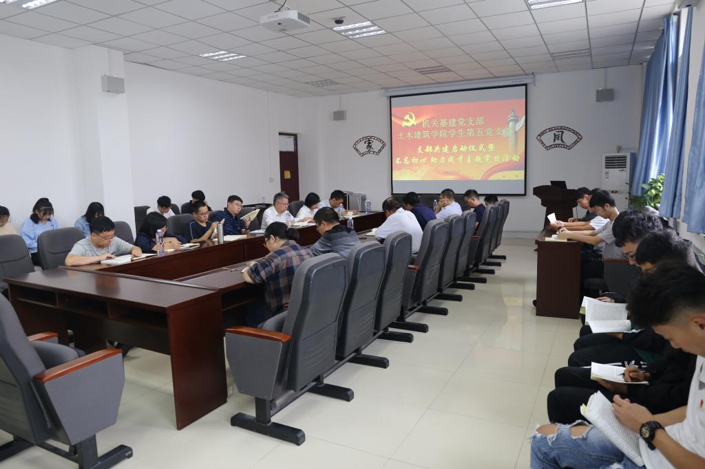 启动仪式结束后。土木建筑学院学生党员代表王靖元同志带领两个支部全体党员共同学习了《习近平新时代中国特色社会主义思想学习纲要》部分章节。随后,两个支部的党员在机关基建党支部党员代表的带领下学习《中国共产党党员教育管理工作条例》。