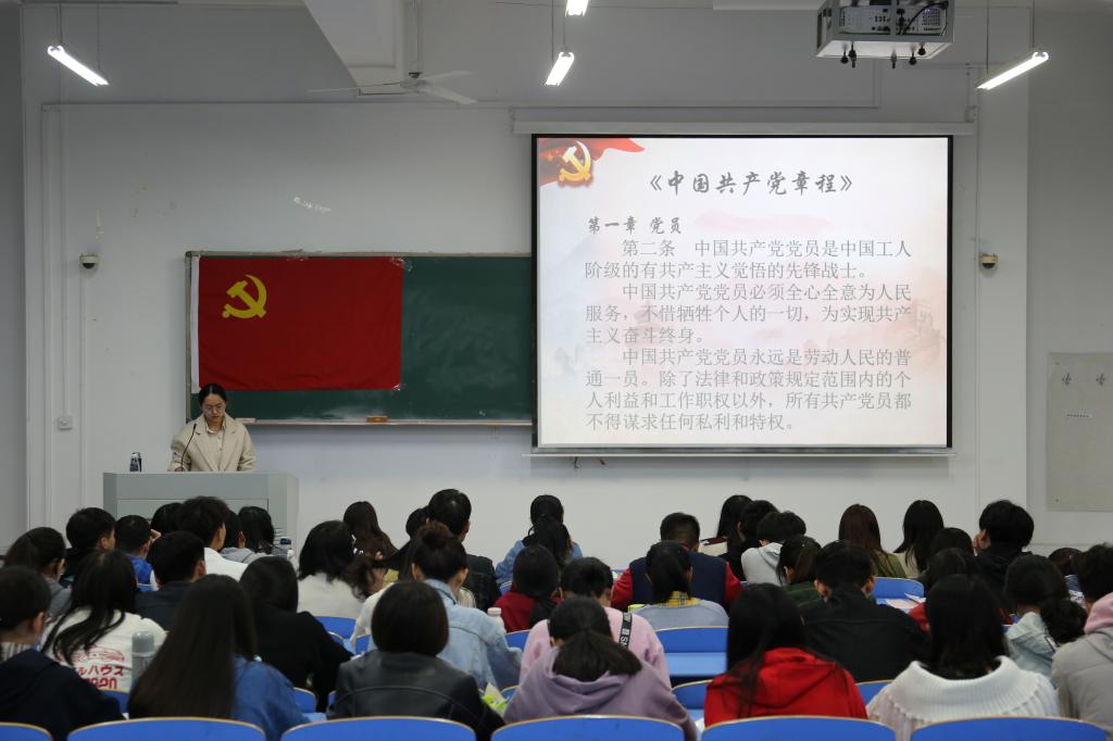 本次党课,常婉茹以旁征博引,深入浅出的讲解,就“什么是共产主义?”、“成为共产党员的条件”、“入党的8条义务”、“如何以实际行动做一名合格的学习党员”以及“合格的学习党员应当做什么?”五个部分展开对本次党课内容进行介绍,多次以问答方式与前来参加的学生进行交流,既加深学生对入党要求及党员的认知,也使得整堂课氛围轻松,便于学员理解。常婉茹在党课中提到:“每个党员对党尽的职责,也是一种规范和约束,”同时强调大学生应树立正确的入党动机,坚持学习书本知识与投身社会实践的统一。党课结束之际 ,常婉茹提出期望:“希望大家做一个诚实守信的人,做一个理论功底,身后政治立场鲜明,品学兼优的大学生。”