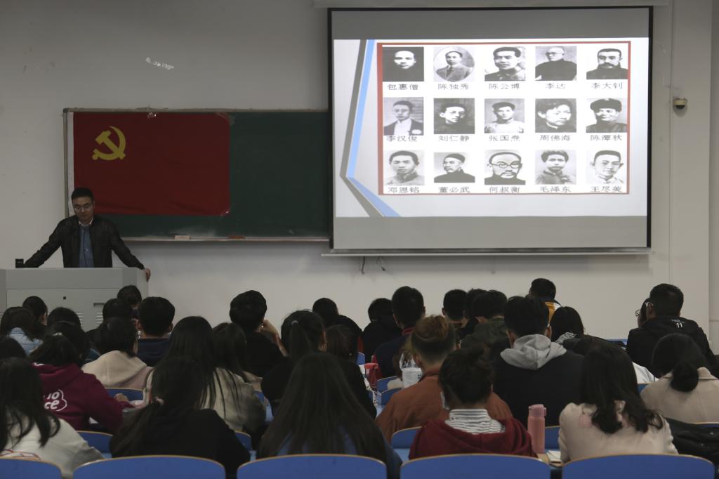 朱舒翼为学员们介绍了中共一大会议的主要成员和主要过程,使学员们了解了中国共产党成立的历史,展现了中国共产党心向人民的一面,朱舒翼表示:我们一定要发扬党中国共产党大公无私的精神,做共产主义远大理想和中国特色社会主义共同理想的坚定信仰者和忠实实践者。之后,朱舒翼播放了《建党伟业》中共一大召开的片段。通过这一片段,学员们感受到了中国共产党建党之初的艰难处境,看到了中国共产党坚韧不拔的意志和坚持革命的勇气。